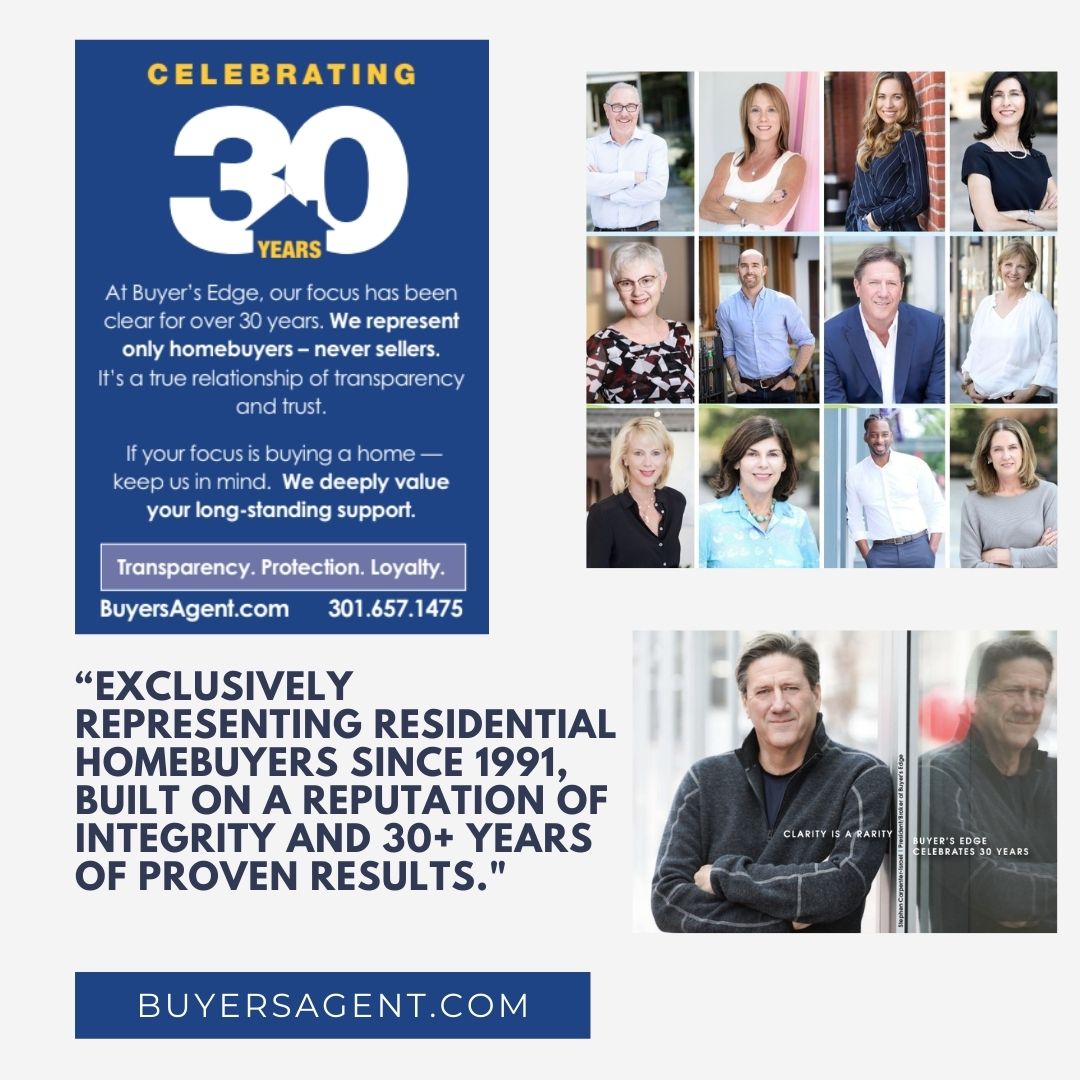 Do You Need a Buyer’s Agent in Washington, DC? Here’s the Honest Answer! About Us Buyer’s Edge | BuyersAgent.com At Buyer’s Edge, we don’t believe real estate should be about sales—it should be about people. About listening closely, guiding honestly, and always putting our clients first. Since 1991, we’ve been proud to serve as the first Exclusive Buyer Brokerage in the Washington, DC Metro Area, founded on a simple but powerful idea: Homebuyers deserve someone on their side. Only on their side. We never represent sellers. Never take both sides of the deal. And never compromise loyalty for commission. Our team is made up of experienced, licensed professionals who advocate with integrity, negotiate with heart, and walk beside our clients through every decision. Whether you’re buying your first condo in Dupont Circle, downsizing in Bethesda, or relocating to Northern Virginia, we bring knowledge, clarity, and genuine care to the process. Our Mission At Buyer’s Edge, we believe that buying a home isn’t about sales—it’s about love. It’s about helping people find a place where their lives can unfold with comfort, security, and meaning. Since 1991, our mission has been simple and unwavering: To represent homebuyers with honesty, loyalty, and care—without compromise. We don’t believe in playing both sides. We don’t believe in pressure. We believe in protecting people—because home is too important for anything less. Everything we do begins with that belief: That real estate should serve people, not the other way around. That good faith matters. That trust isn’t earned through promises—it’s earned through presence. We’re here to walk alongside our clients, not to close deals, but to open doors. To homes. To peace of mind. To what comes next.